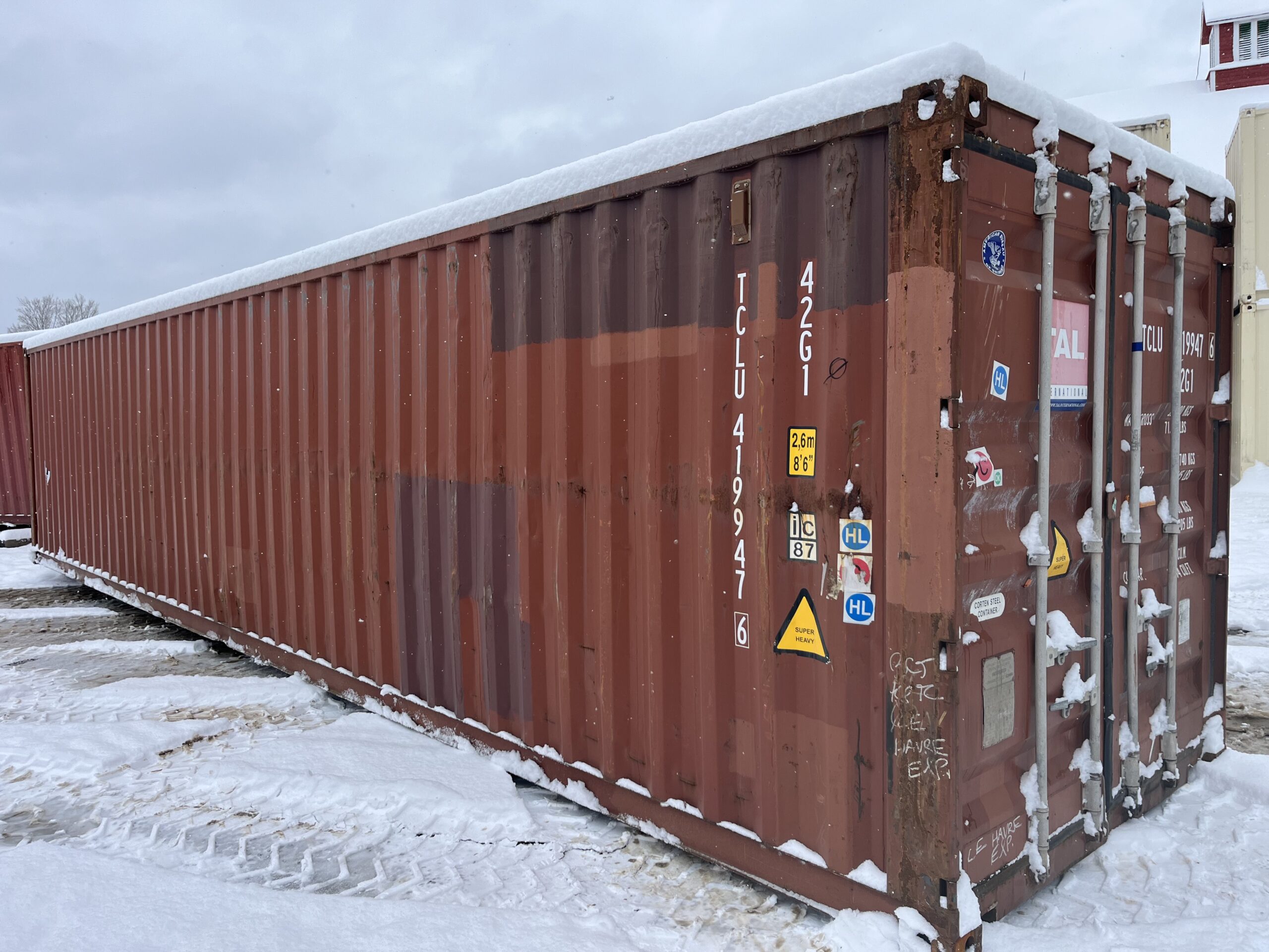 Our 40′ Cargo-Worthy Shipping Container offers the perfect balance of size, strength, and dependability. Built from high-quality Corten Steel, this container meets industry standards for cargo transport, ensuring it is structurally sound and able to withstand heavy loads and harsh weather conditions. It provides a secure, weatherproof solution for large-scale storage and modification projects. The 40′ size allows for ample storage space, making it ideal for both commercial and personal use. With reinforced doors and a secure, lockable design, your goods will stay safe and protected during transit or storage. This container delivers reliable performance and long-term durability without compromising on quality.